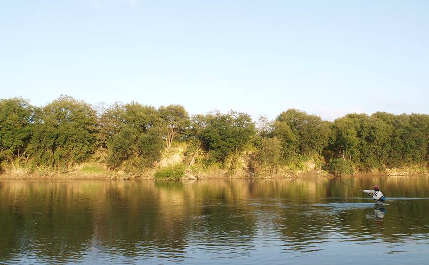 日本最北端の稚内宗谷岬からオホーツク海側を30~40km南下したところに位置する猿払村の猿払川。数多くのイトウが生息し、魚影が安定している数少ない河川だ。主なポイントは、河口から約2km上流の猿払橋周辺まで。潮の影響を大きく受けるエリアで、潮が動いているときがよく、どちらかといえば下げのタイミングがチャンスといわれる。シーズンは5月下旬~6月の初夏と10~11月の秋。湿原を流れ、水色はコーヒーブラウン