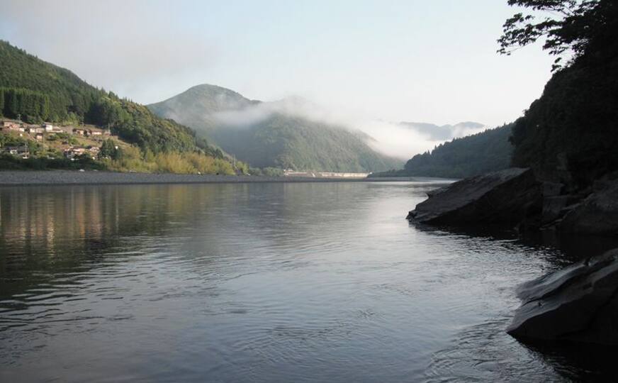 奈良県吉野郡の大峰山脈を水源とする十津川と、大台ケ原を水源とする北山川を合わせ、和歌山県の新宮市で熊野灘に注ぐのが熊野川。近年、水害に見舞われて川が大きく荒れたが、昔から緑の濃い山間の本流にサツキマスが遡上してくる。釣りはエサとなるアユを盛んに追う5月の連休から6月いっぱいが最盛期になる。