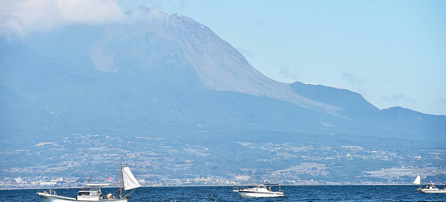 期待に胸を膨らませる二人を乗せた船は、陸を見やれば雄大な雲仙普賢岳がそびえる島原湾に着いた。