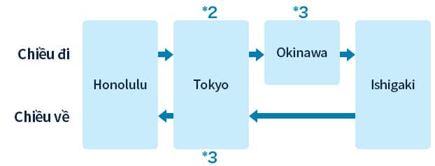 Ishigaki ⇒ Okinawa ⇒ Tokyo*1 ⇒ Honolulu