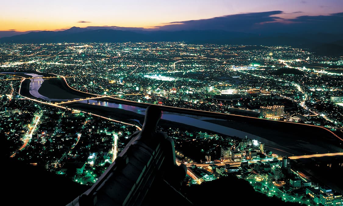 Địa điểm lý tưởng nhất để chiêm ngưỡng khung cảnh về đêm của Gifu là từ Lâu đài Gifu trên núi Kinka. Vẻ đẹp này đã trở thành thương hiệu của lâu đài. Quý khách có thể tới Lâu đài Gifu trên đỉnh núi bằng Cáp treo Kinka hoạt động cả ngày lẫn đêm. Tại đây, quý khách có thể chiêm ngưỡng khung cảnh lung linh rực rỡ từ mọi góc nhìn, một bức tranh toàn cảnh lộng lẫy không kém gì so với cực quang - những con đường nhộn nhịp của thành phố Gifu lấp lánh dưới tầm mắt cùng với ánh đèn của thành phố Nagoya thấp thoáng phía xa.