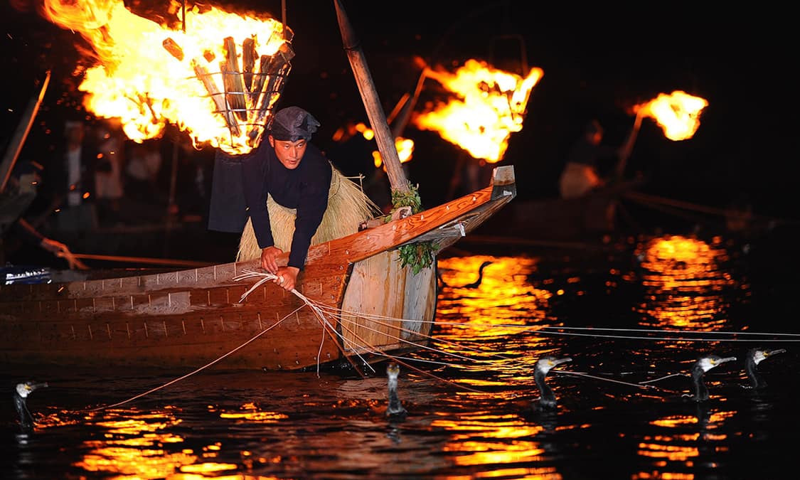Câu cá bằng chim cốc trên sông Nagara, Gifu là một kỹ thuật đánh bắt đã có tuổi đời 1.300 năm, trong đó, ngư dân sử dụng chim cốc để bắt cá. Việc đánh bắt được thực hiện dọc hai bên bờ sông Nagara hoang sơ, trên nền ngọn núi Kinka cùng tòa lâu đài Gifu sừng sững trên đỉnh. Trong kỹ thuật đánh cá truyền thống này, "Ukai", ánh sáng từ những chiếc đèn lồng màu đỏ rực rỡ sẽ soi rọi mặt nước của dòng sông trong màn đêm đen tối và đó cũng là lúc các ngư dân cùng những chú chim cốc phối hợp làm việc. Ngắm nhìn cảnh tượng trên, chắc chắn quý khách sẽ có cảm giác như vừa lạc vào một thế giới thần bí - nơi mọi ý thức về thời gian đều biến mất và đưa quý khách trở về với thế giới cổ đại xa xưa.