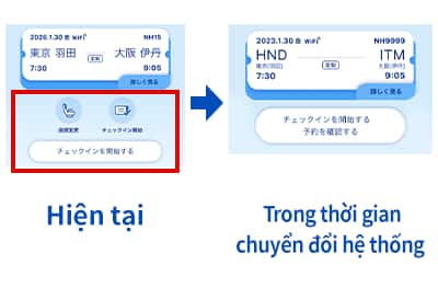 Trong thời gian ở trên, việc xử lý một số dịch vụ chuyến bay nội địa Nhật Bản sẽ khác nhau tùy vào việc sân bay sử dụng hệ thống cũ hay mới.