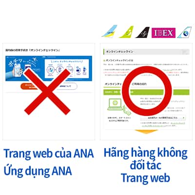 Đối với chuyến bay do hãng hàng không đối tác khai thác*2, làm thủ tục trực tuyến qua trang web của ANA/ứng dụng ANA sẽ tiếp tục được cung cấp cho những sân bay sử dụng hệ thống cũ.