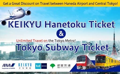 Mua tập vé giá rẻ này và nhận Vé KEIKYU Hanetoku (vé khứ hồi để đi từ Ga 1, 2 hoặc Ga 3 của Sân bay Haneda đến Ga Sengakuji) và Vé tàu điện ngầm Tokyo (vé đặc biệt để hành khách đi không giới hạn trên tất cả các Tuyến tàu điện ngầm Tokyo Metro và Toei).