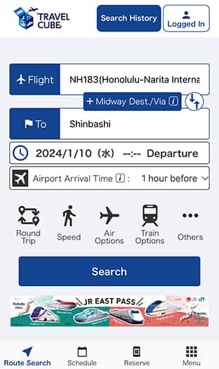 Dịch vụ này cung cấp trải nghiệm liền mạch thông qua việc tích hợp thông tin trạng thái chuyến bay cập nhật liên tục và thông tin vị trí chẳng hạn như nhà ga, cửa khởi hành và chốt kiểm tra an ninh với dịch vụ tìm kiếm kế hoạch nối chuyến sẽ cung cấp cho quý khách thông tin đường đi toàn diện cho toàn bộ hành trình của quý khách. Thông tin này bao gồm đường đi đến sân bay khởi hành và lên chuyến bay của quý khách cũng như thông tin di chuyển để đến đích đến cuối cùng sau khi hạ cánh. Nhờ vào quan hệ đối tác của chúng tôi với các nhà cung cấp dịch vụ vận chuyển đường bộ*1, quý khách có thể đặt trước và mua vé để đến sân bay khởi hành của quý khách*2.