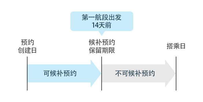 单程可保留1航班的候补预订。