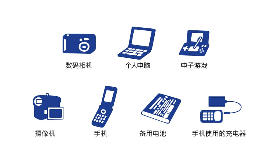 注意点: 将内置锂电池的电子设备作为托运行李托运时,请采取以下措施。