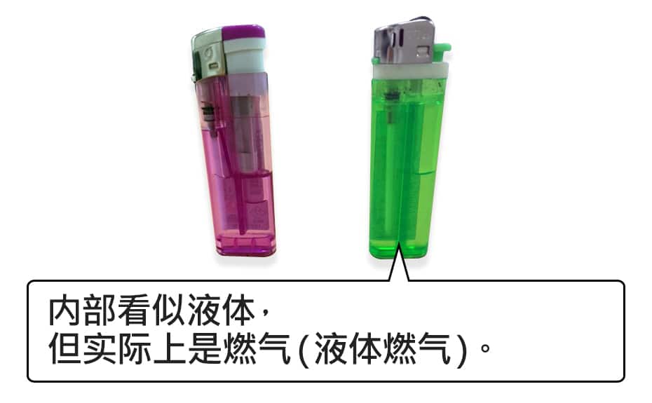 打火机内部看似液体,但实际上是燃气(液体燃气)。