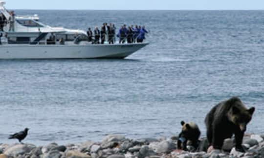 作为象征知床动物的棕熊,是北海道原住民敬畏和信仰的对象。知床是世界上为数不多的棕熊分布密集区。Godzilla岩观光旅行社运行的“知床半岛宇登吕(Utoro)游轮 赏棕熊路线”是一条游客可以从海面上观察棕熊的人气路线。