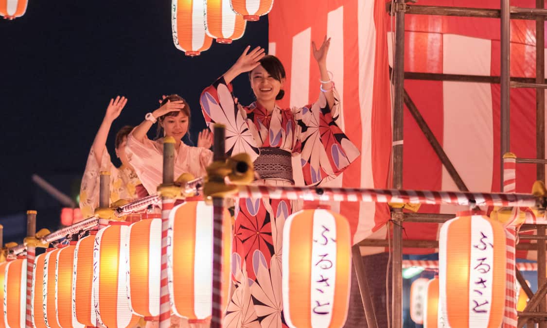 盂兰盆舞:每到夏季,日本各地都会举行盆舞祭典。以会场的高台为中心,围成一圈跳舞。无论是谁都能释放自己,且可以随时参与跳舞,因此能轻松参加。