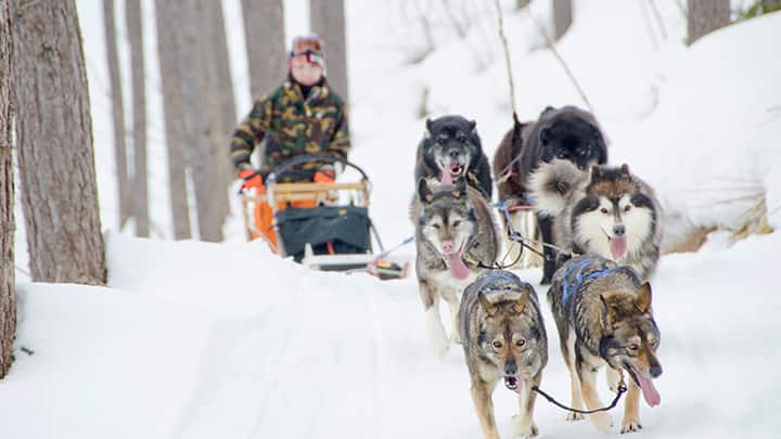 雪橇犬们拉着雪橇,带您在满眼银色的世界中奔跑。您可以成为驾橇者,一边控制雪橇犬,一边欣赏四周的自然风光和壮阔雪景。