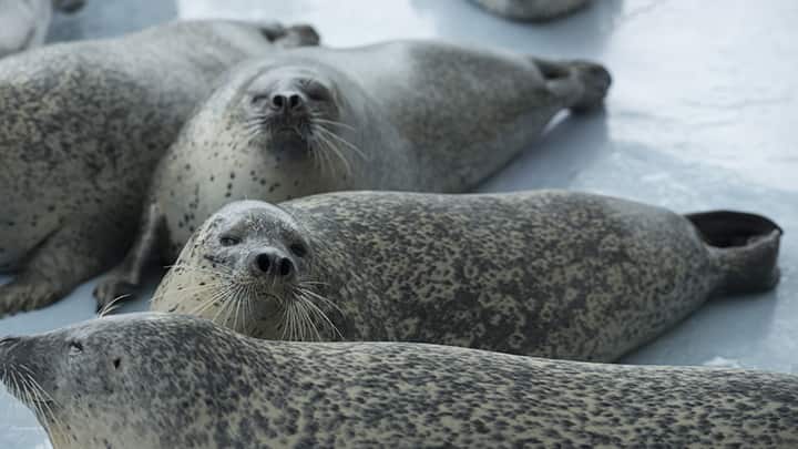 严冬里,在漂浮着浮冰的鄂霍次克海上,乘坐用巨大钻头破冰前进的破冰船,在海上巡航。能亲身体验到令人敬畏的大自然。