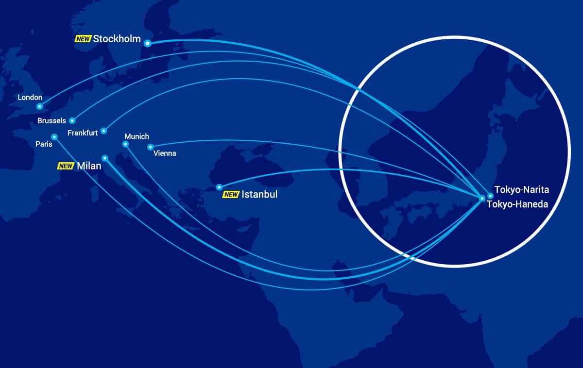 增开3条新航线,让欧洲到日本的旅行更加便捷。