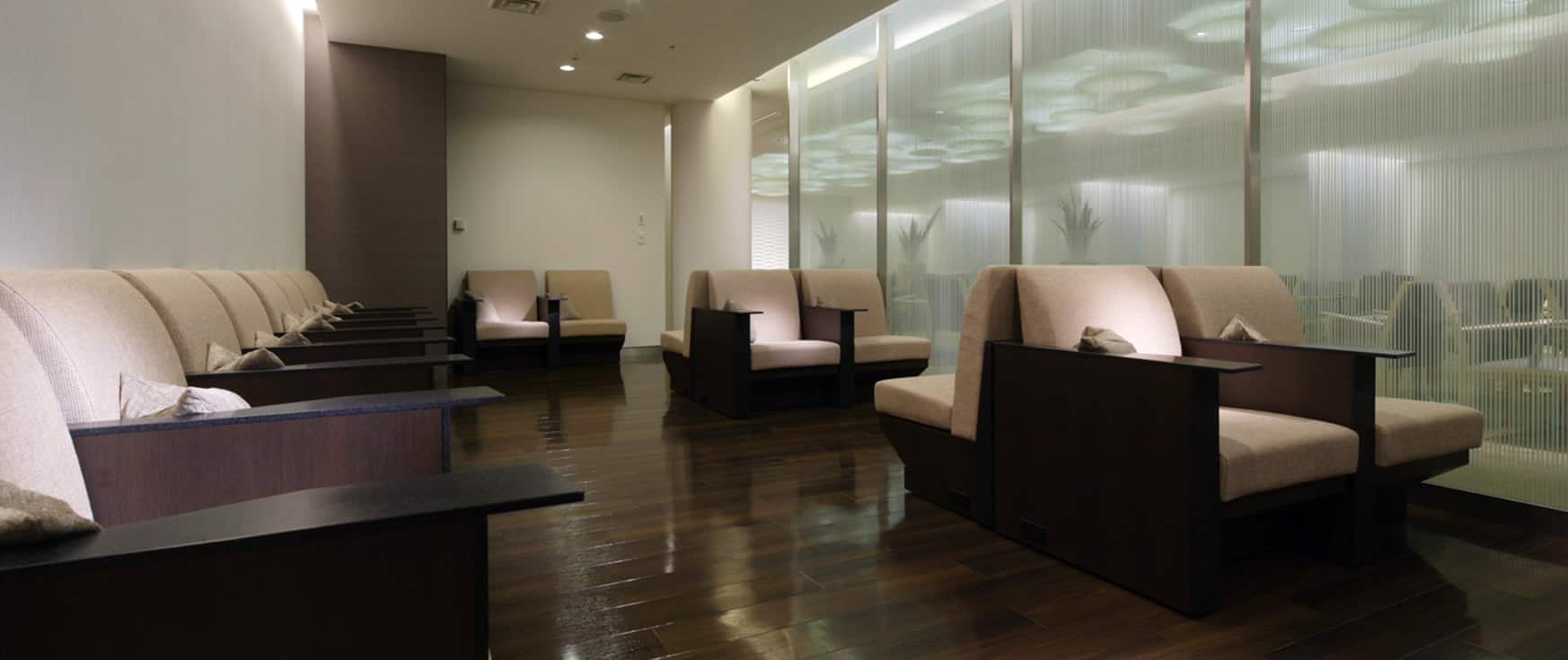 出发前请在宽敞舒适的休息室中享受闲暇时间。这里有餐食服务、休息区,以及其他各种服务。