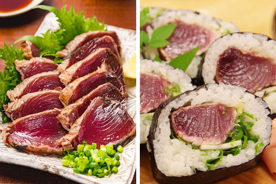 探索高知鰹魚的獨特風味,解開高知成為日本鰹魚銷量最高地區之謎。這種受歡迎的鰹魚可以多種方式享用,從高知特有的炙燒鰹魚到土佐卷壽司、海苔卷壽司以及其他各種調味品,應有盡有。