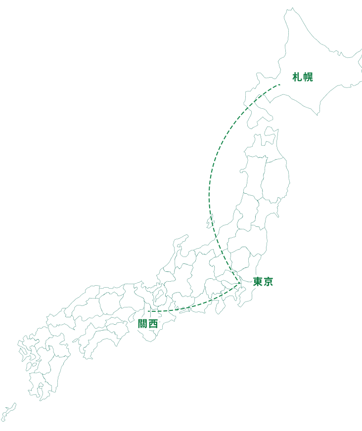 可從日本的主要城市乘搭航班直接前住北海道和關西的幾個機場。從東京到北海道大約需時 1 小時 30 分鐘,到關西大約需時 1 小時 25 分鐘。ANA 提供許多航班選擇,您可以輕鬆在國內轉機。