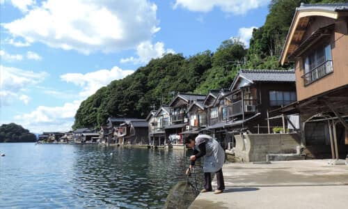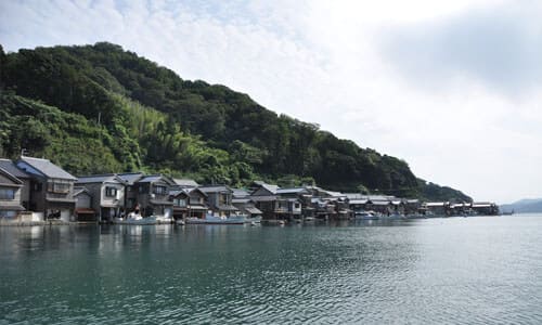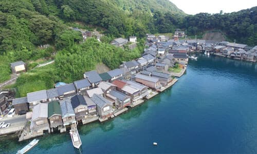 伊根是位於京都府北部面向日本海的一個小漁村,在伊根灣沿岸延續 5 公里處,至今仍然保留著約 230 間舟屋(傳統的木製船屋)。這些舟屋建於水上,一樓用作停泊船隻,二樓則為生活起居空間。舟屋圍繞著海灣佇立排列,形成了伊根町獨特的風光,喚起一種懷舊之情。