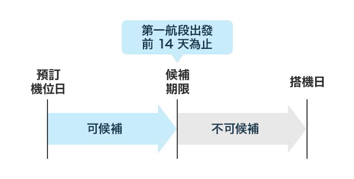 不過,若該航段已取得確認機位,或是已有其他等待候補的航班,則無法受理。