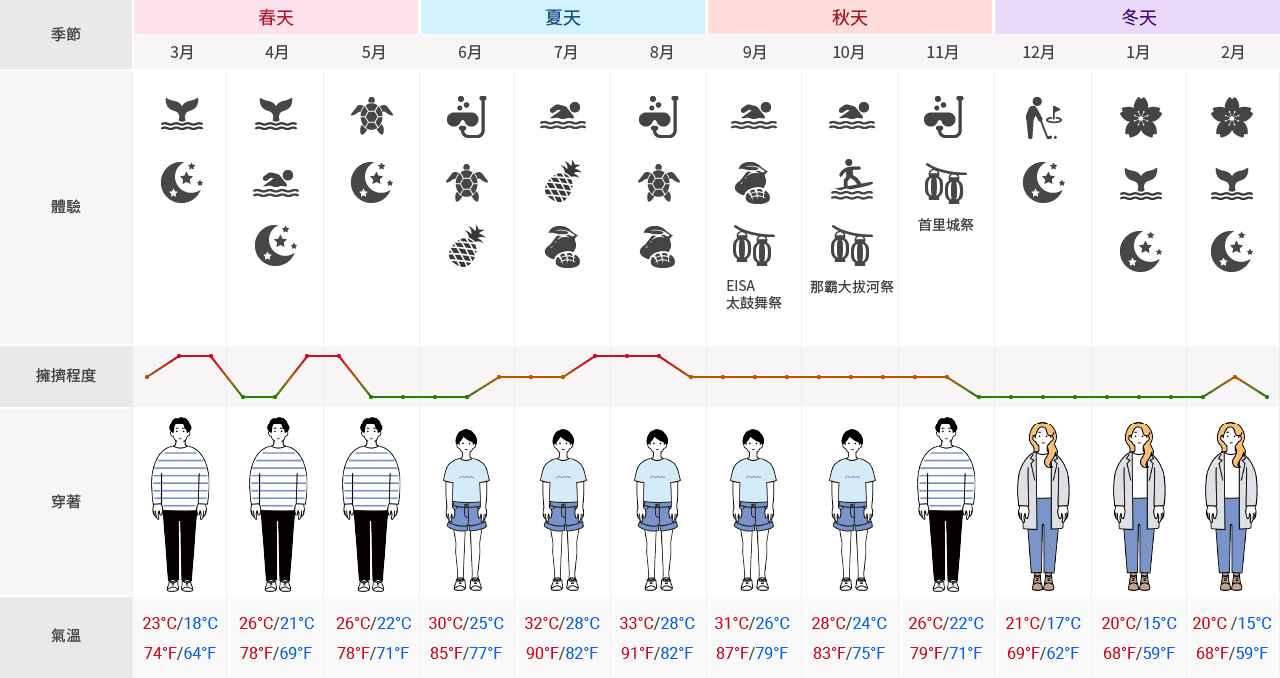 - 平均氣溫係參考那霸市 2022 年氣象廳網站。
