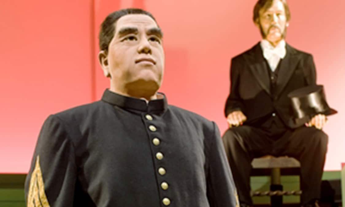 其中最吸睛的項目,當屬在地下一樓「維新體感展演廳」上映的兩部戲劇作品。作品《維新之路》中,透過按西鄉隆盛和大久保利通等偉人長相打造而成的等身大機器人與多重螢幕,上演極富臨場感的生動戲劇。