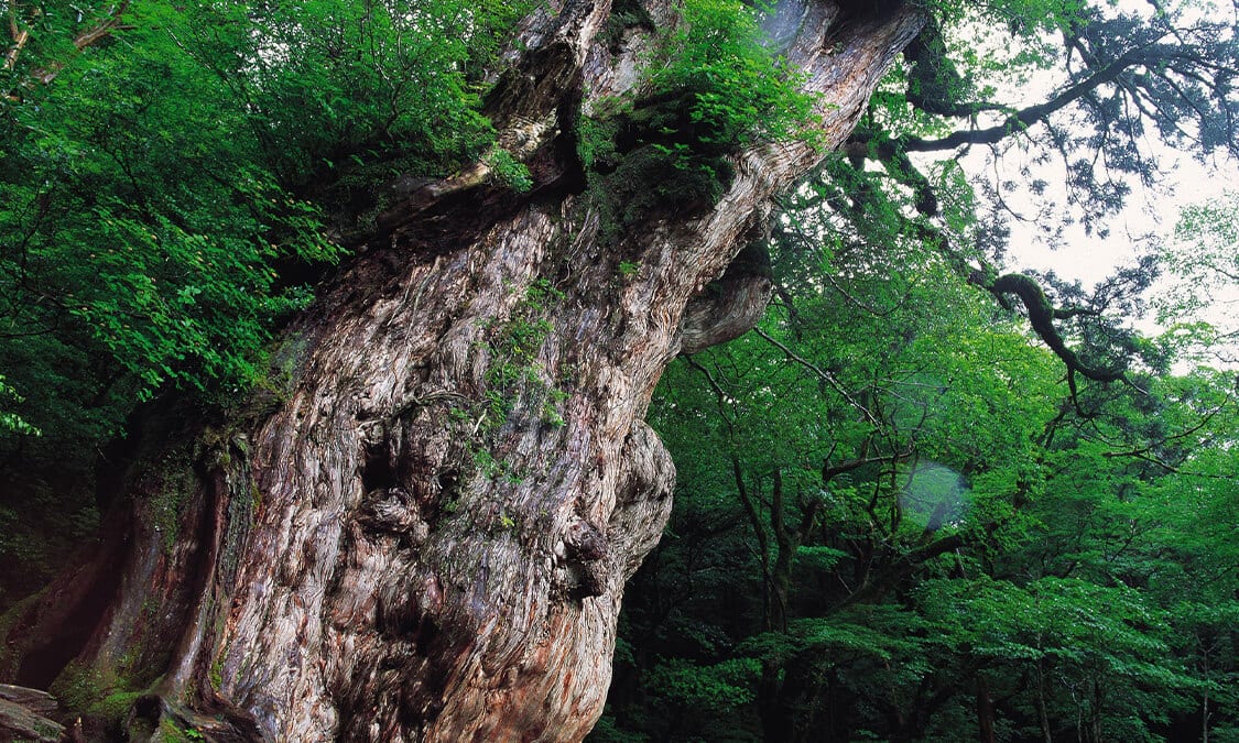 在傳聞中神明們居住的森林深處觀賞屋久島的象徵,「繩文杉」(胸高直徑 16.4m)。數千年以來歷經風霜的姿態,震懾了前來觀賞的旅客。
