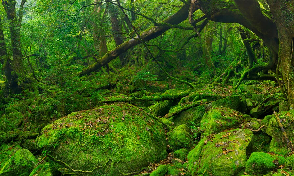 在屋久杉森林樂園,白骨雲水峽內的青苔森林與太古之森據說是電影『魔法公主』場景的原型,此外,也很推薦開車就能前往觀賞的紀元杉。