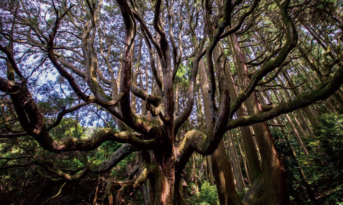 在高森町還有另一個能量景點「高森殿之杉樹」。這是一對樹齡超過 400 年的巨大杉樹,樹幹直徑超過 10m,從主幹生長出許多分枝,奇異的姿態無論觀賞幾次都令人感到震懾。這對杉木相敬如賓地聳立著,被視作雄杉與雌杉,一般認為能夠保佑並帶來緣分。