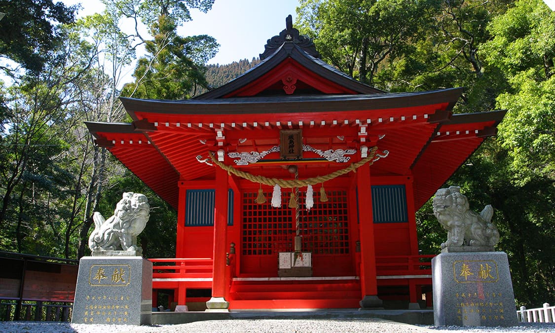 那須大八郎宗久受命討伐壇浦之戰中破碎的平家一門,對於椎葉山中平家殘黨沒有反叛企圖的姿態深感憐憫,於是請來平家尊奉的安藝之宮島,嚴島神社的守護神建立而成。