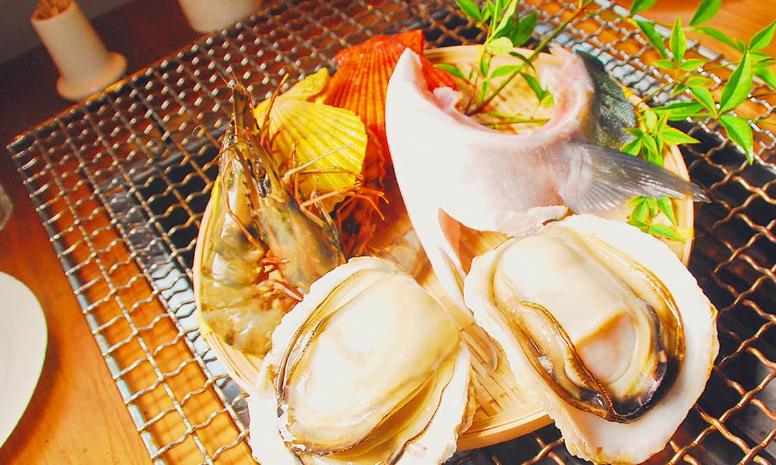在提供各種海鮮的『牡蠣寧』,除了細島岩牡蠣之外,還有連同新鮮海鮮也會一起上桌的岩牡蠣套餐,是最具人氣的菜色。並且,在剛烤好的細島岩牡蠣淋上清爽酸味與柔和風味兼具的日向市特產柑橘平兵衛酢果汁,是很受歡迎的吃法。在時髦的店內悠閒地度過美味時光,受到當地顧客及外地顧客、無論老少的顧客群愛戴。