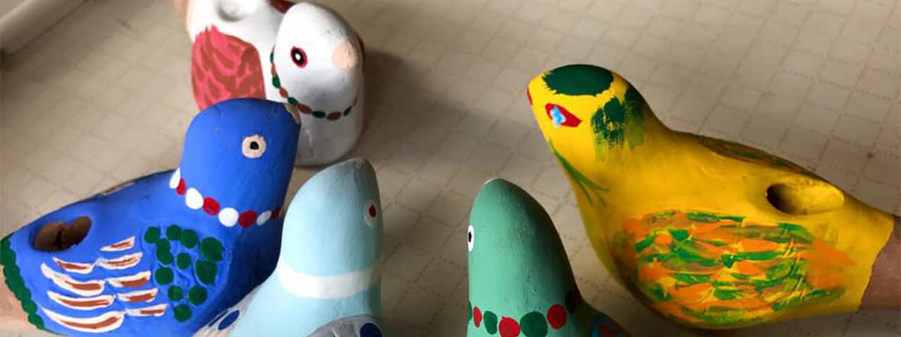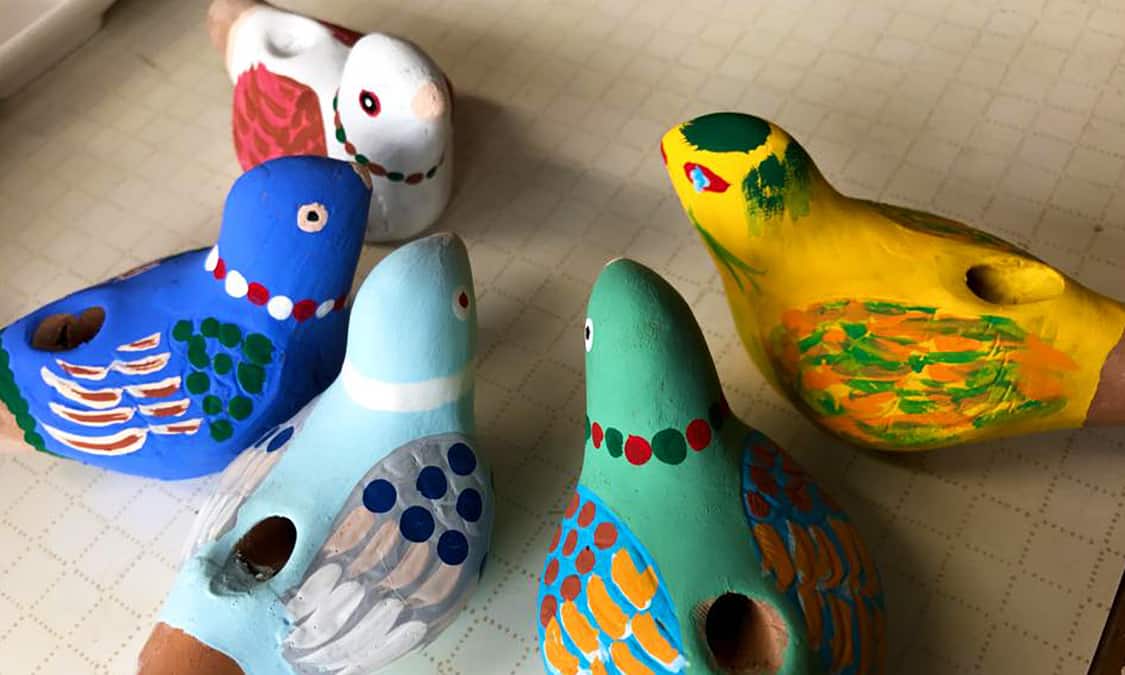 在武雄溫泉物產館所舉辦的全新體驗課程『和平的鴿笛彩繪體驗』,是指為素燒後的鴿笛上色,完成後就是原創的鴿笛了。鴿笛可讓您直接帶回去,推薦您直接裝飾在自己家中喔!