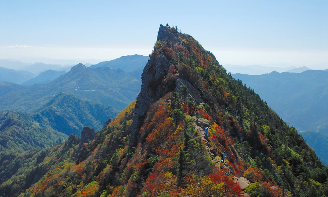 石鎚山位於愛媛縣西条市,海拔達 1,982 公尺,為西日本最高峰。植物品種橫跨暖溫帶林至亞寒帶林,生長著四國地區的特有品種及瀕危品種,是孕育珍貴植物的大自然寶庫。