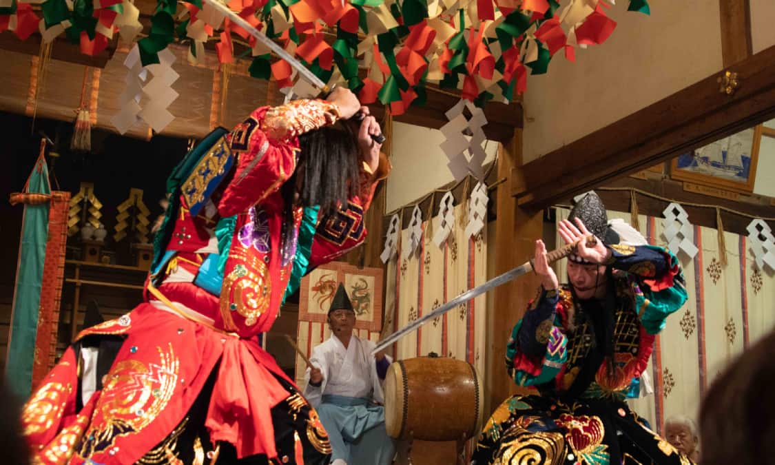 鳥根縣西部的石見神樂雖是傳統藝術,卻融合了煙火等現代要素,與時並進、舊中有新的精彩表演絕對不容錯過。在島根縣大田市的湯野津溫泉幾乎每逢週六晚上,都能欣賞當地表演者所帶來的表演。