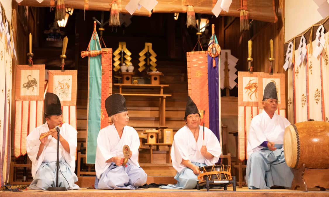 石見神樂是石見地區自古流傳的傳統藝術。原本是神官在秋天祭典上用以酬謝氏神 (土地神),感謝五穀豐收的儀式,在明治時代後普及至一般民眾,成為傳統的民俗藝術。石見神樂的特徵是舞蹈較一般神樂更輕快。當地民眾投入石見神樂的程度,幾乎可用狂熱來形容。請務必實際一睹石見神樂,感受這股熱情的能量。
