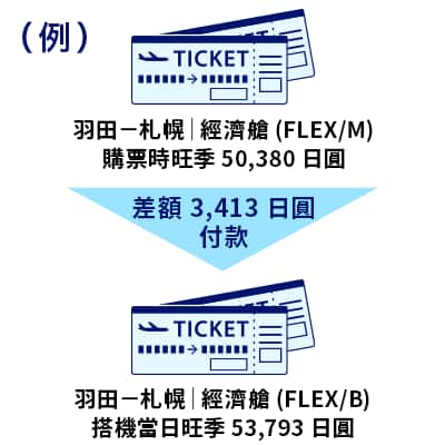 若為可更改訂位的票價,且搭機當日於出發機場更改至同航段有空位之航班,可能因空位狀況產生票價差額。